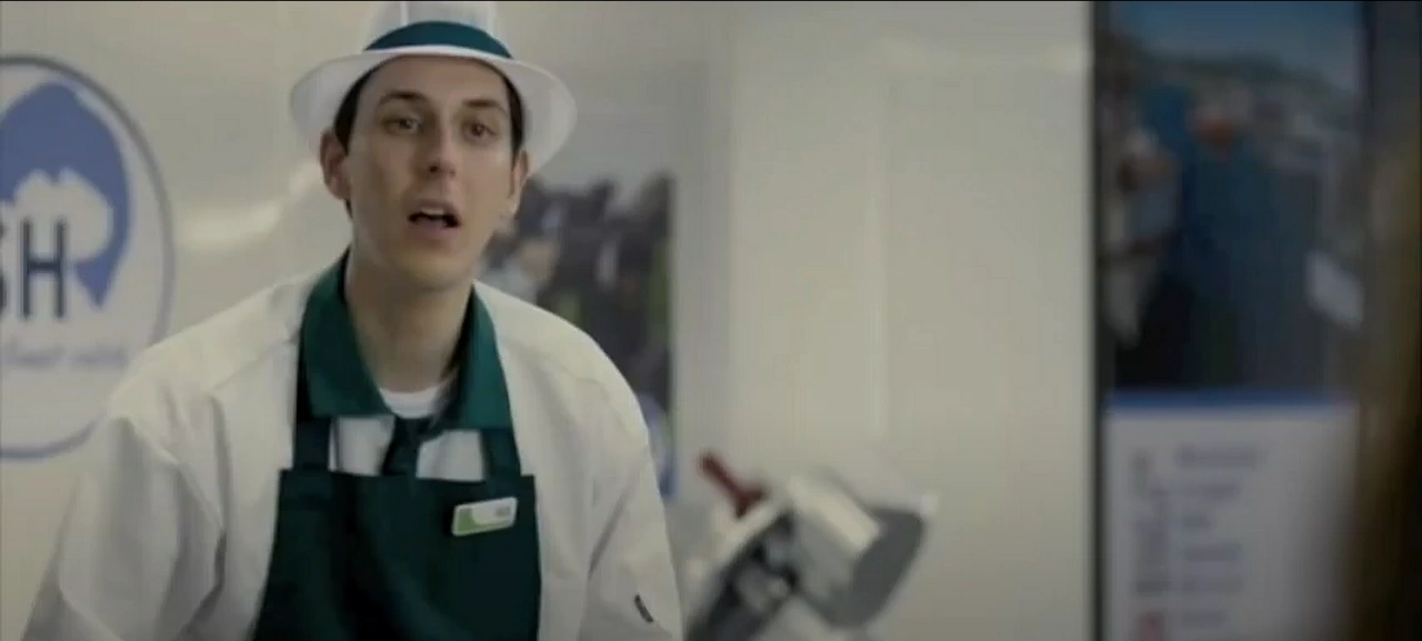 Neil working, as a fishmonger